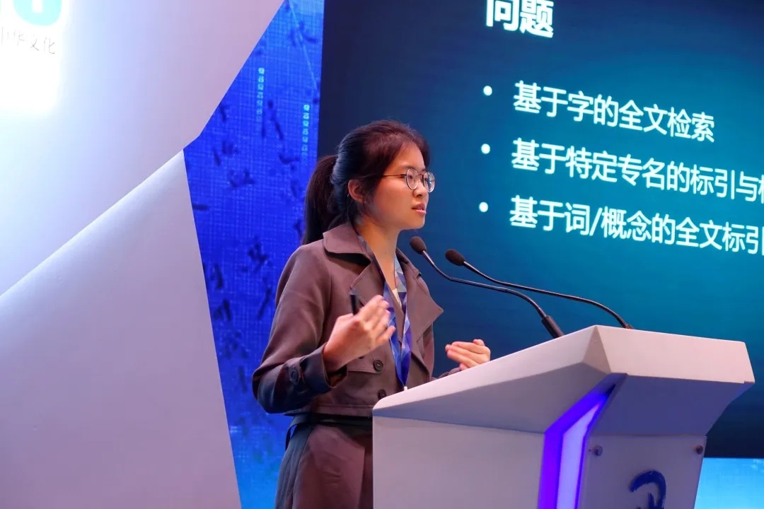本科生万晨在“数字人文研究新锐”主题论坛版块进行了题为“《资治通鉴》数字人文知识库的建设”的主题报告。
