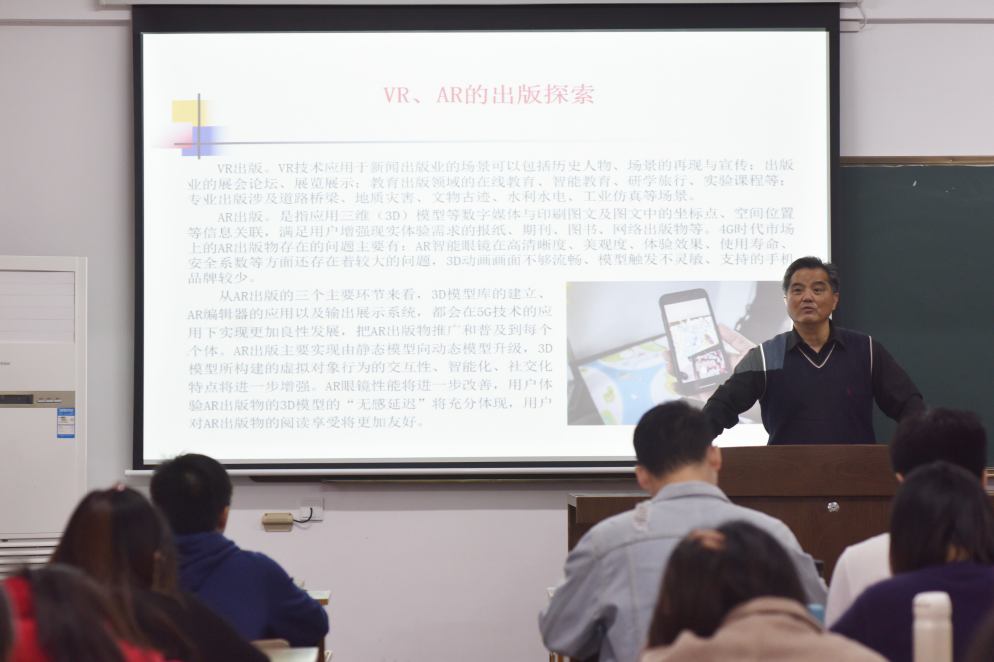 技术的发展使得智能阅读不断替代传统阅读,媒介手段的发展将会逐渐使得受众阅读从语言、符号的表达转向各种新媒体形式的表达上。陈生明编审以出版领域的实践应用为例,详细讲述了AR、VR的出版探索,5G+XR在文教应用方面的巨大潜力,人工智能如何加速出版转型,内容产品的智能分发和社交分发,技术层面算法优化的改进和实践应用等等,使得同学们对智能阅读的多种形式有了基本了解,也对出版领域的技术应用实践有了一定的认识。