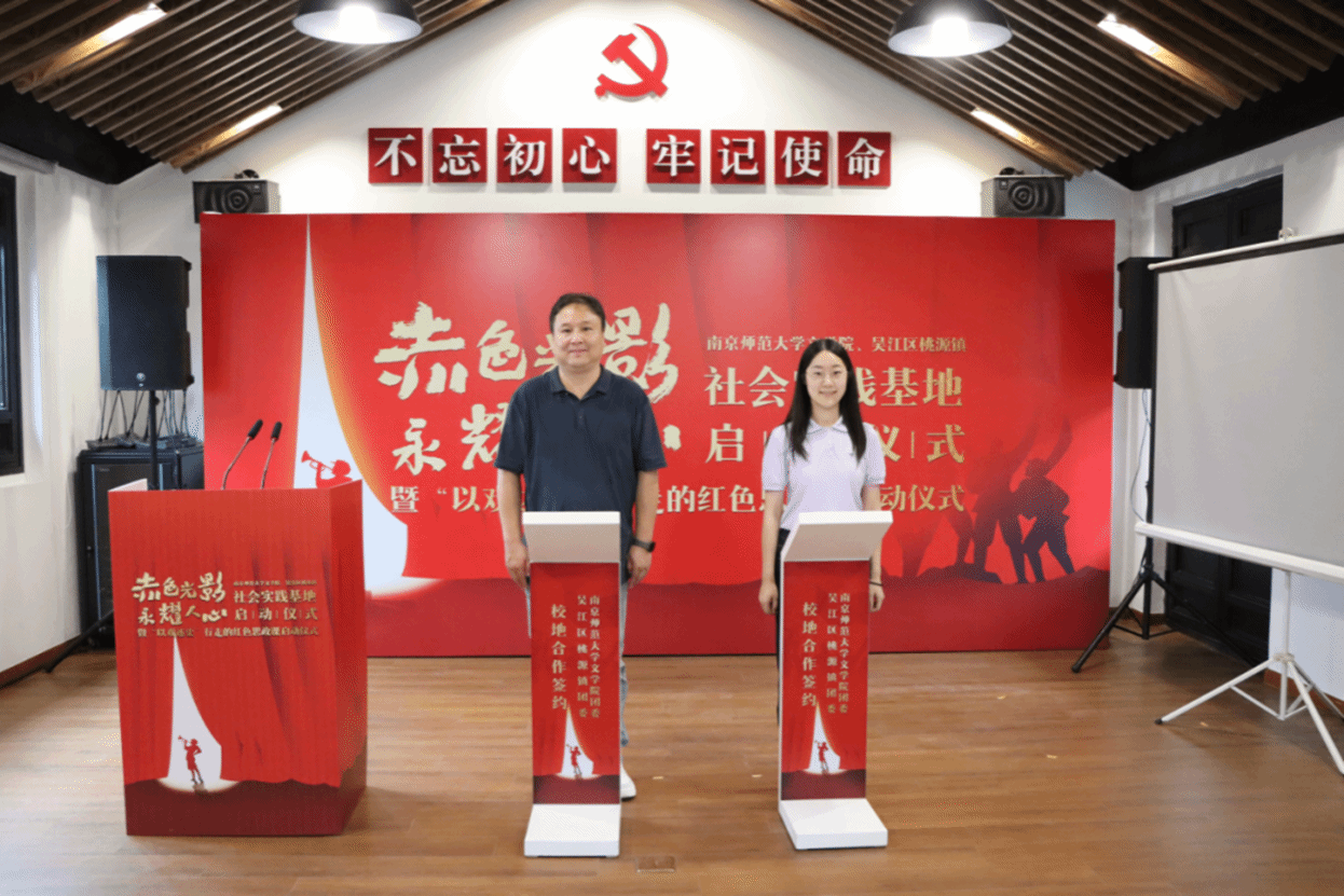 、吴江区桃源镇社会实践基地启动仪式暨“以戏述史”行走的红色思政课启动仪式在吴江党史馆举行,通过开展校地合作,发挥高校人才、专业等资源优势,助力桃源镇打造高质量的红色剧目,为新时代爱国主义教育建设赋能增效。
