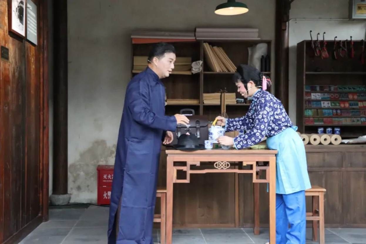 活动前,一行人参观了吴江党史馆,并在铜罗古镇福泰兴烟纸店沉浸式观看红色情景短剧《秘密联络站》。