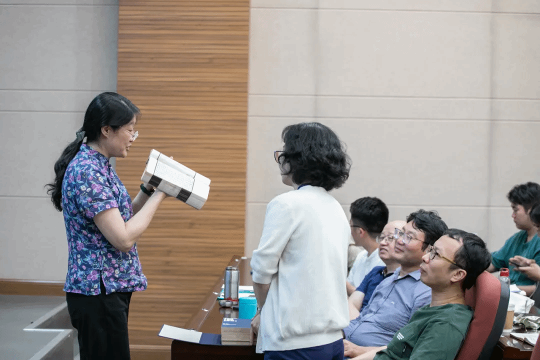 最后,刘老师介绍了“天禄琳琅”古籍修复情况。2013年6月,国家图书馆古籍馆完成了“天禄琳琅”未编书的编目并对其进行了破损情况调查。调查结果显示,国家图书馆藏“天禄琳琅”约3500册,其中300余册存在纸张糟朽、絮化、粘连、原装帧结构解体以及装具严重损坏等问题,亟需修复。为此,国家古籍保护中心提出设立国家图书馆“天禄琳琅”古籍修复专项,并给予资金支持。2022年1月7日,“中华古籍保护计划”重大项目——清宫“天禄琳琅”修复项目正式结项并取得圆满成功。项目不仅保证了修复任务的完成,还先后完成了近十项相关科研项目,研发了所需的修复材料,如瓷青纸、粉蜡笺等,并发表相关学术论文十余篇。此项目历时8年之久,是自2007年“中华古籍保护计划”实施以来最大的一次针对国图珍贵古籍的专项修复行动。项目实行“师带徒”的人才培养模式,边修复保护、边研究、边传习,提升青年古籍修复师修复水平,进一步规范古籍修复工作标准,为今后的古籍修复工作起到良好的示范作用。