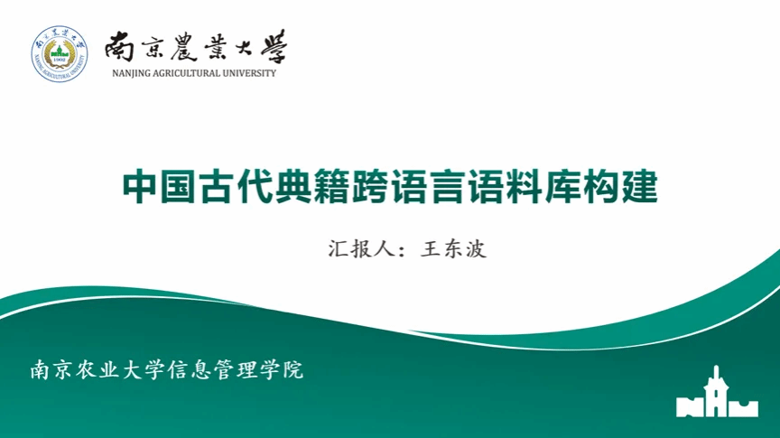 南京农业大学信息管理学院王东波教授在线上作了《中国古代典籍跨语言语料库构建》的特邀报告。他指出,由于古籍文本的语言特点与现代汉语有显著差异,且受到古代汉语文献获取、标注难度的限制,现有的古代汉语语料库的规模和标注深度都较为有限,所以由南京农业大学、av视频