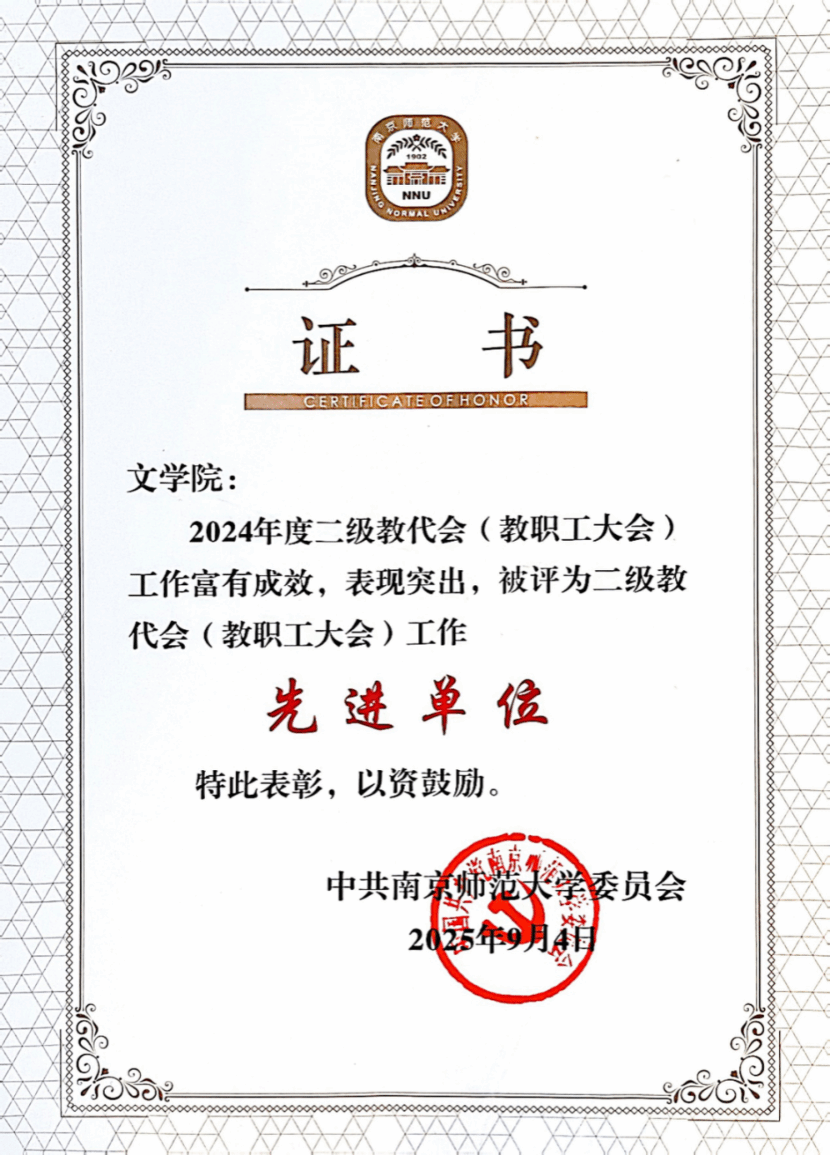 连续第二年荣获该项荣誉,充分体现了学院在教代会制度化、规范化、常态化建设方面的持续领先与卓越成效。