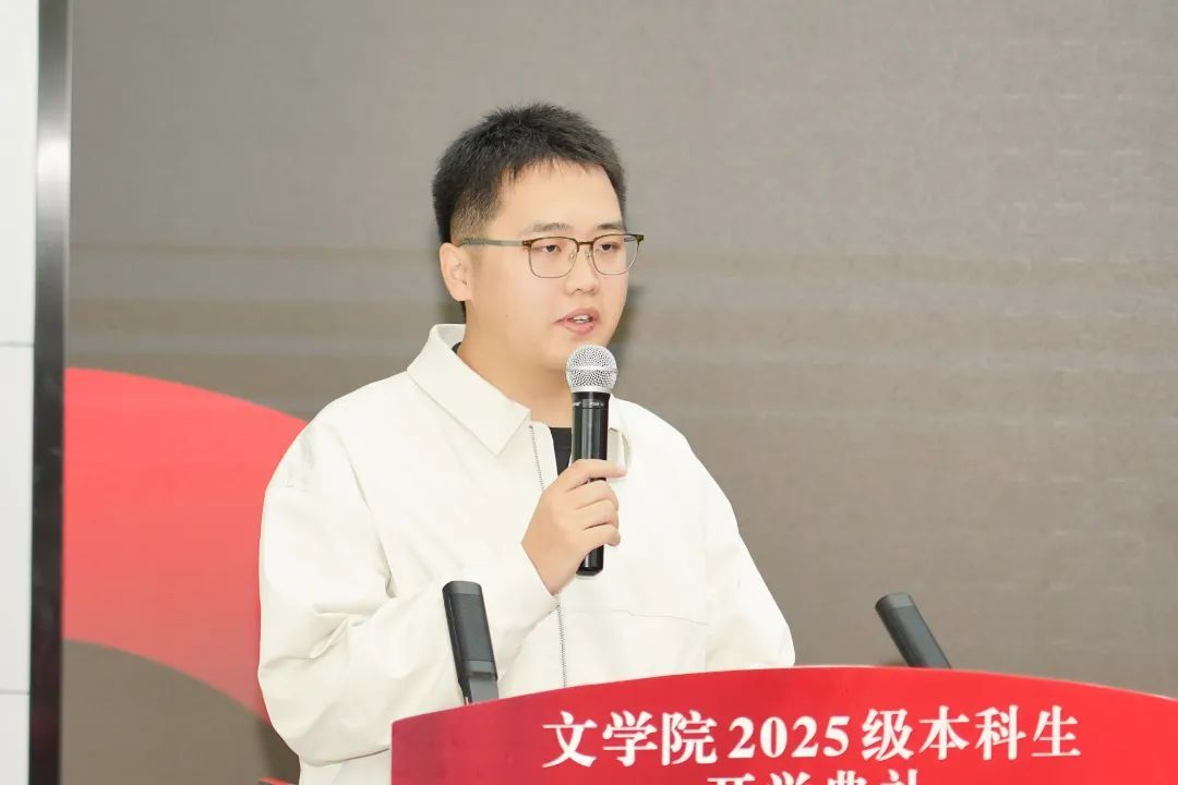 2025级新生的到来,他从百廿南师、文脉绵长;百廿南师,厚生致远;百廿南师,筑梦远航三个方面,回顾了学校、学院的厚重历史和深厚文脉,并立足百年未有之大变局,阐述了新时代文科学子的使命。他对全体新生提出三点殷切希望:一是坚守初心,做“有志”的文院人;二是锤炼本领,做“有识”的文院人;三是开拓创新,做“有为”的文院人,传承百廿文脉、集美求真、奋楫争先,绘就属于自己的青春画卷!
