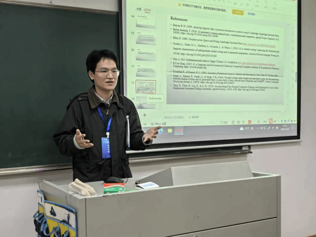 11月8日下午,论坛设置国际连线主旨报告与5个研究生分论坛:英国赫尔大学 Shane Lindsay 教授通过腾讯会议作《Agenti AI for Reproducible Language Science: From Prompt to Pipeline》报告,分享人工智能在可复现语言科学研究中的创新应用,各分论坛教室同步组织观看学习。