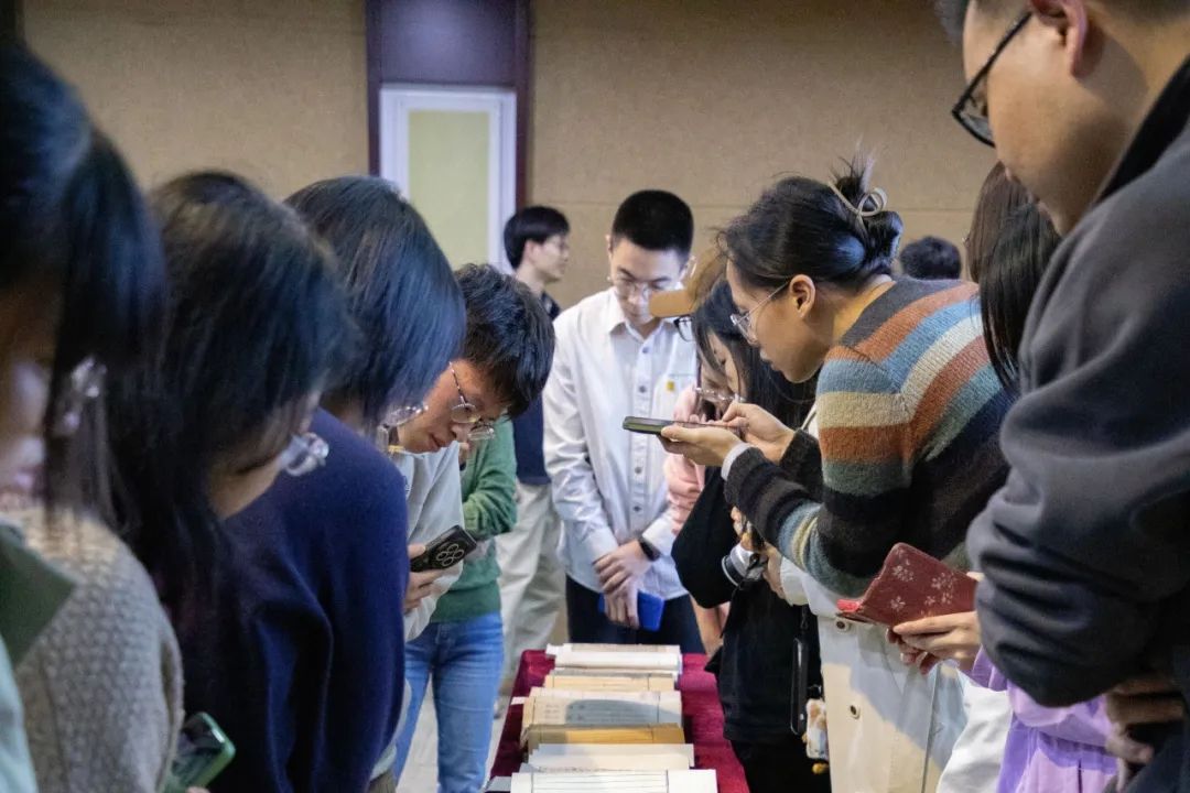 挂牌仪式之后,天一阁博物院李开升研究馆员以《明中叶版刻新风格的源和流》为题做精彩讲座。讲座之后,出席活动的师生共同近距离观摩南京图书馆馆藏宋本等珍贵古籍。