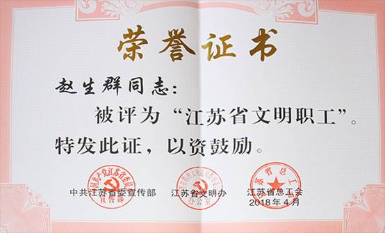 赵生群教授获“江苏省文明职工”称号,成为在宁高校中唯一获此殊荣的教师。