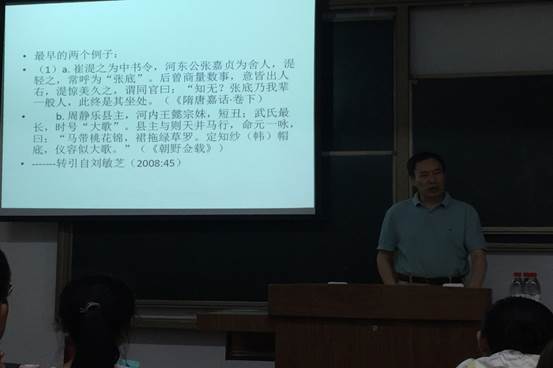 科研副院长洪波先生受我院汉语言文字学专业之邀来我院进行讲学座谈。两场讲座均由我院董志翘教授主持,汉语言文字学专业的化振红教授、赵家栋副教授参与座谈,我院汉语言文字学专业的硕士生、博士生以及南京大学等兄弟院校的研究生参与了讲座。