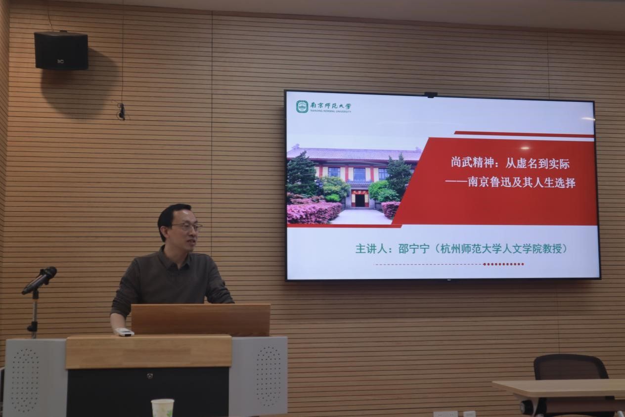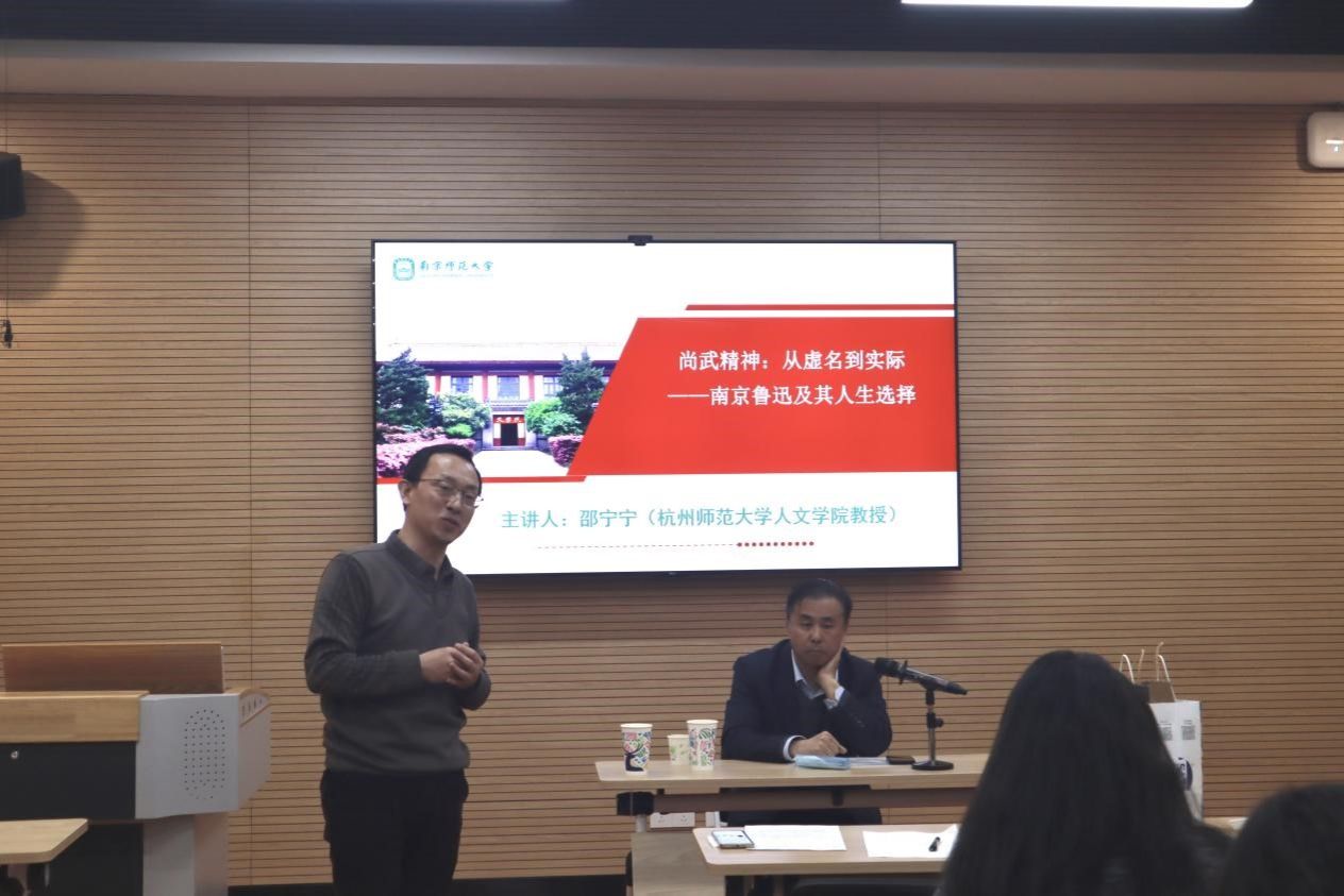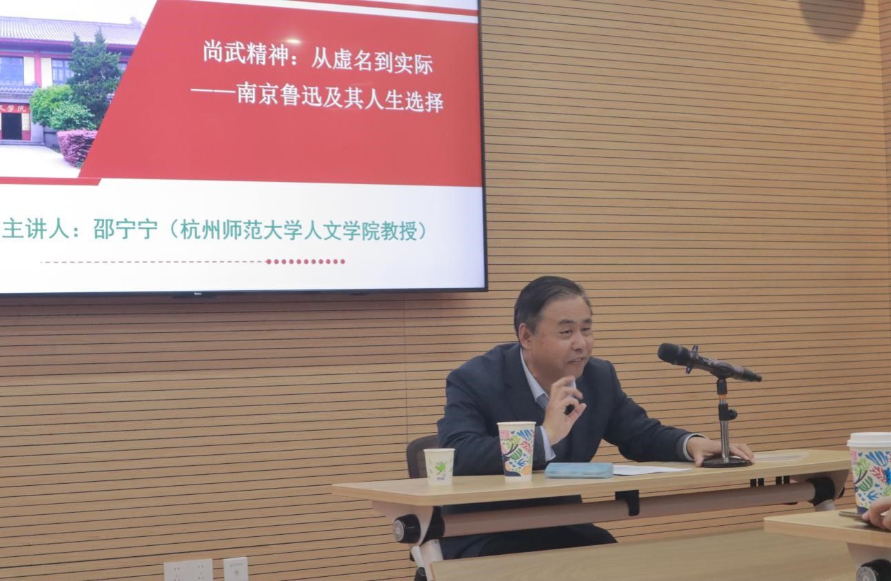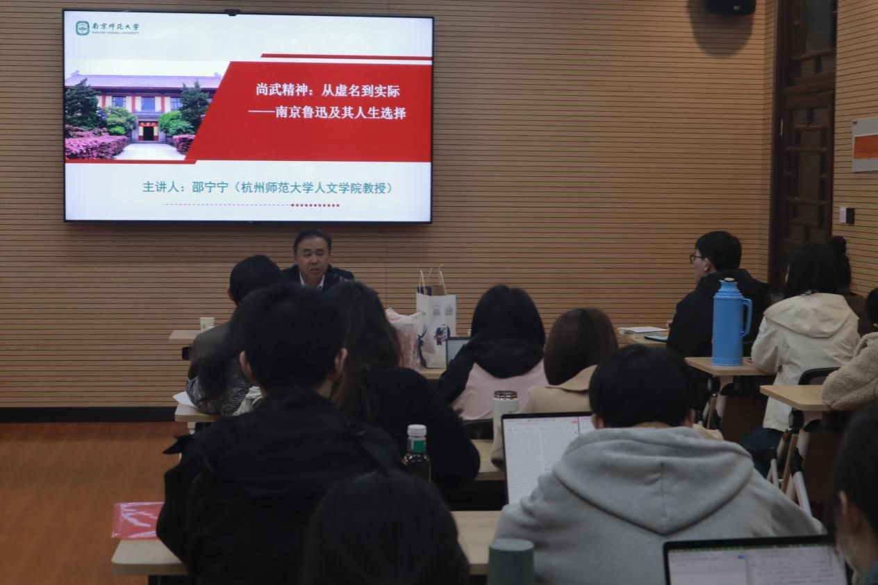 ,以“尚武精神:从虚名到实际——南京鲁迅及其人生选择”为题,从“传统认知中的鲁迅”、“南京时期的鲁迅”、“鲁迅从军梦由虚名到实际的转化”这三个方面解读了南京时期的鲁迅及其人生选择,为我院师生带来了一场精彩的学术讲座。本次讲座由我院副院长沈杏培教授主持,中国现当代文学专业的研究生们到场参与。