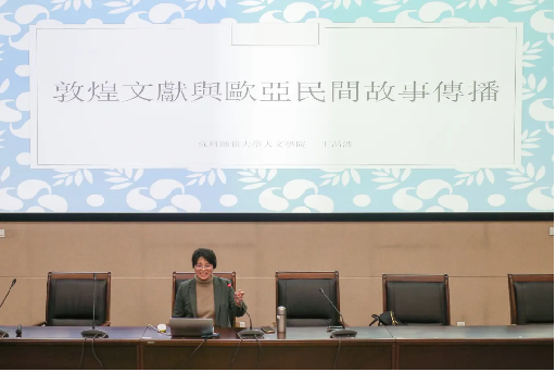 王晶波教授以“敦煌文献与欧亚民间故事传播”为题进行了精彩演讲。本次讲座由古典文献学专业王锷教授主持,古典文献学专业部分教师、硕博士研究生、本科生及校内外听众数十人到场聆听讲座。