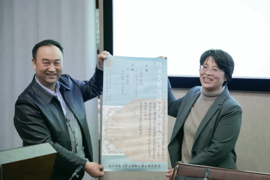 王锷教授首先介绍了王晶波教授的学术成就与经历,向大家讲述了他们20余年的同事情谊。王晶波教授也向大家介绍,虽然她的研究方向从历史地理学转向了敦煌学,但是其研究工作一直是以古籍整理为中心展开的。
