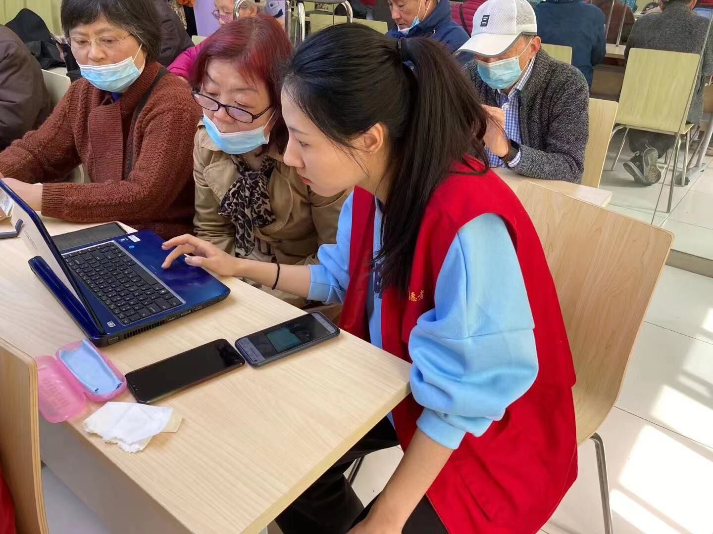 2020级研究生第二党支部的志愿者在虎踞关社区活动中心二楼集合。虎踞关社区为社区内老人们开展了相关课程培训。考虑到社区授课老师的精力有限,志愿者们主要在授课过程中,对社区老人遇到的相关问题进行辅导,以便课程顺利开展。例如为电脑连接无线网络,下载课程中需要用到的课件和软件等等。