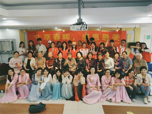 清韵笛社、汉服社以及来自全校的志愿者们共同参加。 “养女抚儿天性使,怀胎分娩泪痕存,担惊受怕心头肉,变凤成龙梦里魂”,这世界,只有母亲一直不求回报地注视着我们,挂心我们的身体健康、操心我们的学业前途、期待我们的展翅高飞。母亲节,文欣青协的志愿者们聚集在鲁迅园,为逐渐老去的父母献上母亲节的祝福,为空巢老人,带来欢乐与温暖。