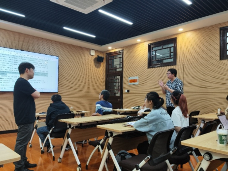 提问环节中,两位来自汉语言文字学专业的研究生就讲座内容与史教授展开深入交流。赵家栋教授也在总结中对该研究进行了高度评价,史教授在传统字词研究领域,加入了句法语义研究的新视角,既为汉语史研究提供了新范式,也启示我们:汉字史研究立足句法语义接口,方能更好地揭示语言演变深层机制。