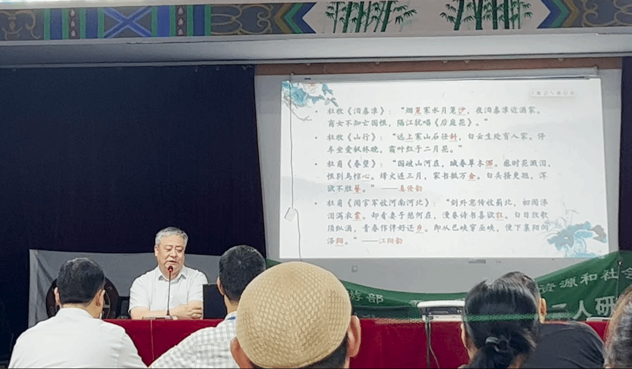 院长高峰教授做了题为“唐宋文化与唐诗宋词”的讲座,高院长旁征博引、深入浅出,为学员们解析了唐宋两代在文化特点、绘画风格、书法艺术以及诗词表达上的差异。在讲座的最后,高院长用“唐调”吟诵了三首唐宋经典诗词,高情远致、余音绕梁,赢得了全场学员的满堂喝彩,极大的激发了学员们的学习兴趣。