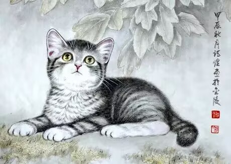 魏同学有“金陵猫王”美称,但在2015年夜大同学第一次聚会的前两三年,我曾看过他画的“猫”,那时发现,其“猫眼”大而无神;进书画群后,再看其“猫眼”,灵动有韵,撒娇的,活泼的,似能窥其内心世界……